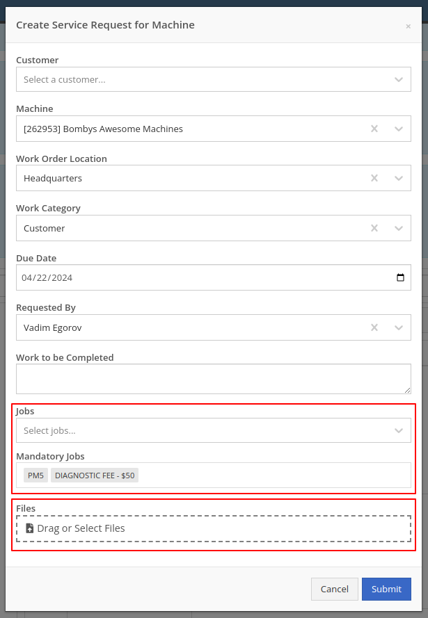 Service Requests now include options to add predefined job templates and display any mandatory jobs, if applicable. These templates will be applied to the Work Order once the Service Request receives approval.We have introduced a File Upload Capability, allowing users to attach files directly to their Service Requests. The attached files will automatically be associated with the corresponding Work Order post-approval.Enhanced notifications will ensure that Service Managers receive alerts when a Service Request is initiated. Automated notifications will also update requesters about the approval or rejection of their requests.