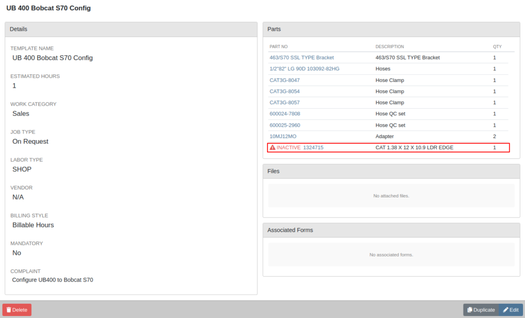 Improve Inactive Parts on Work Order Job Templates