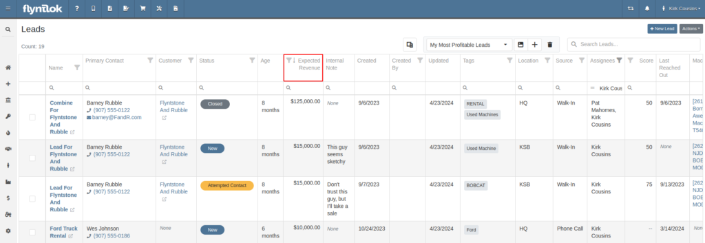Opportunity: Salespeople have requested the ability to see “Internal Notes” as well as the “Expected Revenue” for a Lead from the “All Leads” view. Previously, these fields could only be viewed after clicking into a Lead.Solution: The “All Leads” view has been updated to display both Expected Revenue and Internal Notes from the lead. With these columns, salespeople can now enhance their searching, sorting, and filtering. For example, these can be used to search for specific notes or to sort by the most valuable leads. Additionally, salespeople will see more information at a glance when reviewing all their leads.