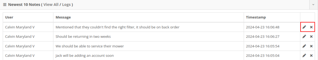 Opportunity: Flyntlok users have requested the ability to edit or delete Customer Notes that were added to a customer on the Customer Dashboard.Solution: The Customer Dashboard has been updated with an edit and delete function for notes added. Edits and deletions are visible in the customer's logs.