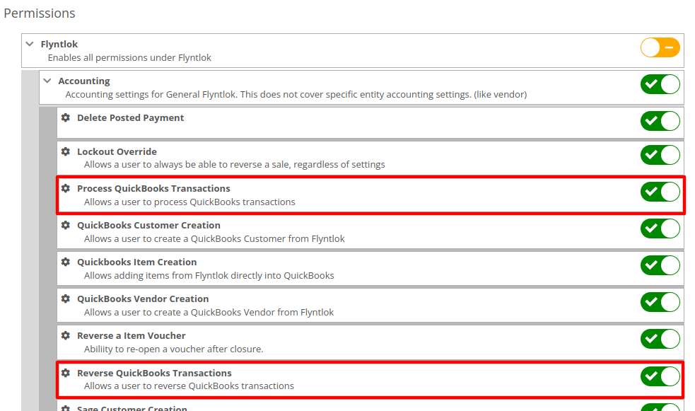 New Permissions have been added to control which users can process or reverse QuickBooks Online transactions. The new permissions are called “Process QuickBooks Transactions” and “Reverse QuickBooks Transactions” under the Accounting section.