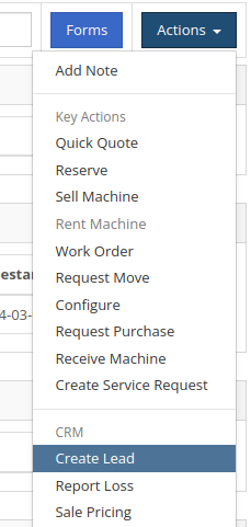 - We have also added a “Create Lead” option to the Actions menu on Machine Dashboard.