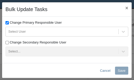 Managers have requested the ability to change Tasks’ primary and secondary responsible users in bulk.