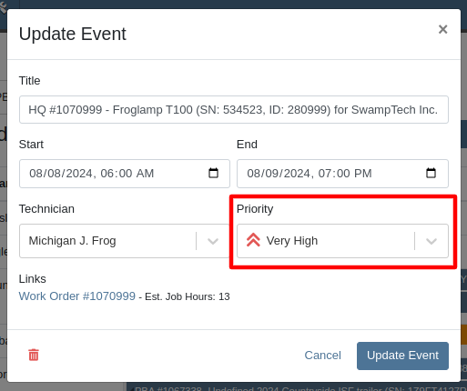 Added “Priority” badges and the ability to edit any Work Order’s "Priority" to the Service Scheduler.