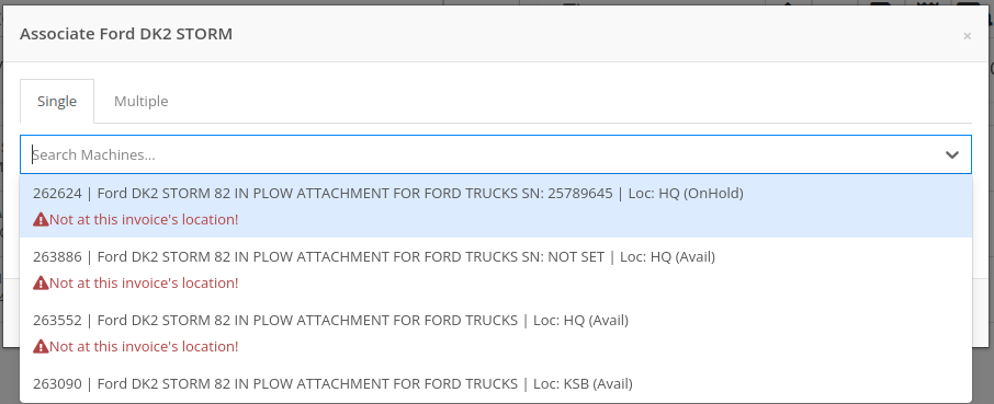 Salespeople requested a warning that a Machine is not at the same location when associating a Model with a Machine on a Sales Order. (This feature already exists when selling a machine on a Sales Order.)