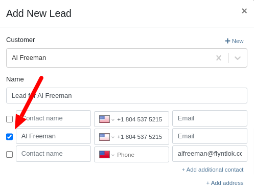 Added a checkbox next to each contact line on Lead creation, which can be selected to set it as the primary Contact.