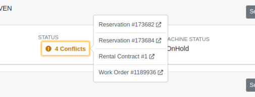 Clicking on the button will reveal links to the exact conflicting Work Orders, Reservations, or Rental Contracts: