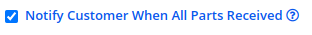 If this feature is enabled, the notifications of the received parts for the Special Order customer are consolidated into one notification and only sent when all are received.