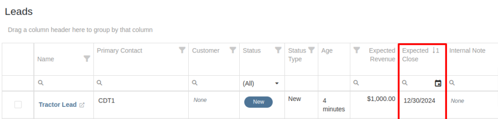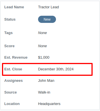 Sales Managers have requested the ability to set an expected close date on leads so that they can better track salesperson performance.