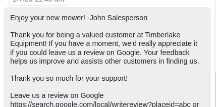 Salespeople wanted a way to personalize the message sent to their customers when sending them a request for a Google or Facebook review. While we previously supported adding text to a Review Request, a Salesperson's customer was sent the same message template that could not be edited.