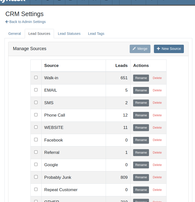 - Add New Sources: Easily add custom “Sources” via Admin Settings → CRM → Lead Sources. New sources become immediately available for use across all Leads pages.