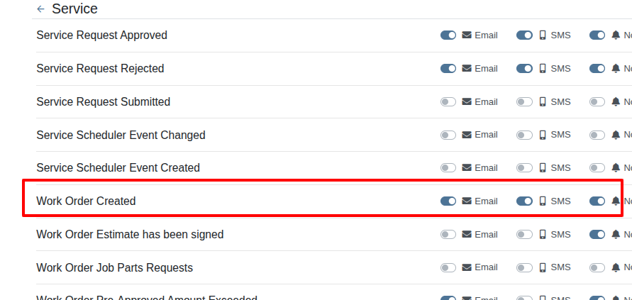 We now offer a notification for newly created Work Orders. Users can enable this in User Settings → Notifications → Service to receive alerts as soon as a technician submits a new Work Order.