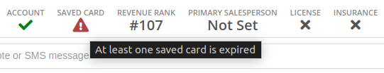 The summary section of the Customer Dashboard has been updated to display the status of a customerâs saved credit cards. The icon will indicate if all credit cards are valid, if any card has expired, or if a customer has no credit cards.