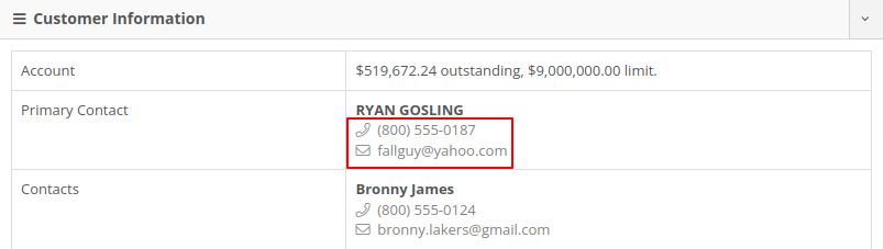 Users managing contacts on the Customer Dashboard have requested the ability to click to call/email their contacts listed in the Customer Information panel.