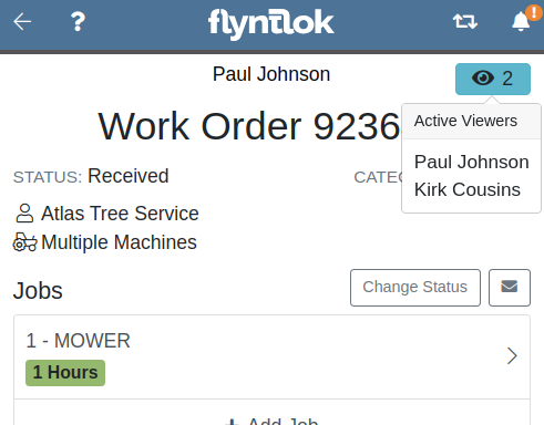 The Active Viewer list applies to users viewing the Work Order across both Mobile and Desktop platforms.