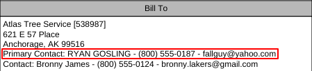 Solution: We have updated the Work Order print out to display the customerâs Primary Contact in the âBill Toâ section. If the Primary Contact is the same contact that was selected on the Work Order, the print out will appear the same as before.