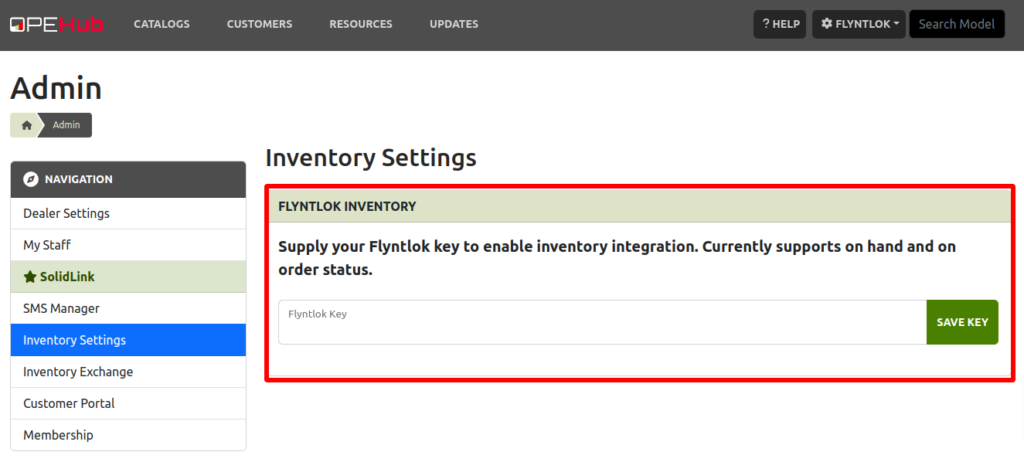 - Go to Inventory Settings and paste the access token from step 4 to the âFlyntlok Keyâ field.
