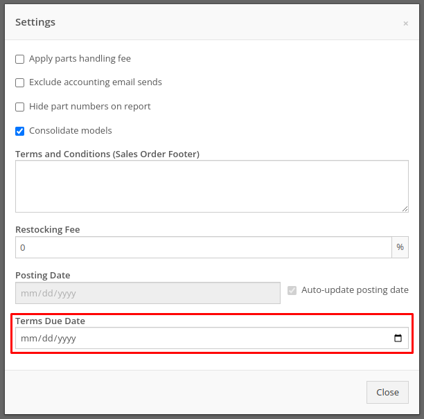 Solution: Weâve added a new field called âTerms Due Dateâ to the Invoice. When posted as an Invoice to QuickBooks Online, any date set here will become the QuickBooks Online Inoviceâs Due Date. You can find this new field on the Point of Sale by opening the Details panel and clicking the Settings button in the top right corner.