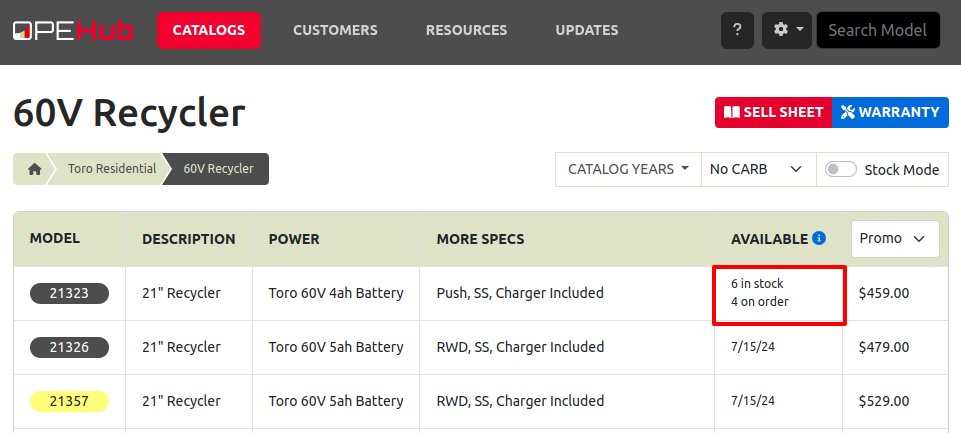 Opportunity: Salespeople at Toro dealers have requested the ability to access real-time inventory data from Flyntlok within OPEHub. (OPEHub is a third party quoting and reference sales tool used by Toro dealers. If you are a Toro dealer and are interested in OPEHub, please contact them at drew@opehub.com.)