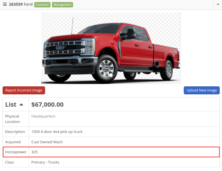 Solution: The Machine Dashboard has been updated to display the horsepower of a machineâs model. This value must be edited at the model level, but will display on any machines of the model.