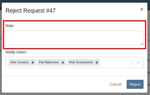 Added a “Note” field to the form for Approval or Rejection of the Service Request.