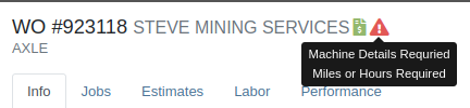 We have made the Machine Warnings dismissible and added a warning indicator to the header of the Work Order Dashboard. When you hover over the badge, it displays the same warnings, ensuring that the interface remains clear and functional while still providing easy access to those important warnings.