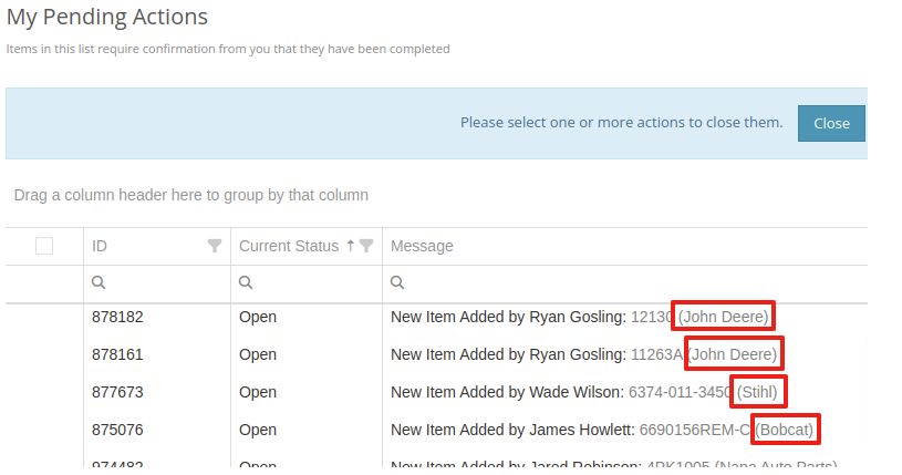 Added a clickable link to the Item’s vendor at the end of each message on the "Pending Actions" view.
