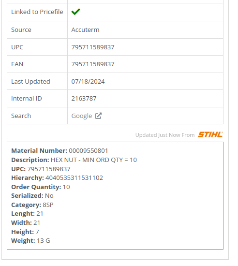 We have upgraded our integration to the latest version offered by Stihl so that we can show the most up-to-date information possible. We have updated the widget on the machine dashboard to reflect the newest Stihl data; additionally, we have added the same information to the widget on the item dashboard.