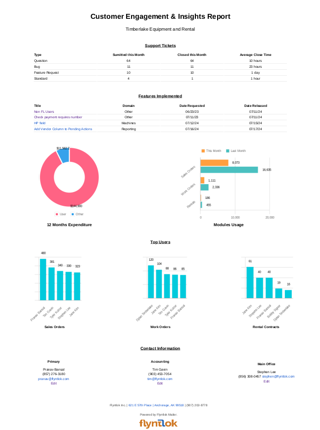 We will start sending all of our Flyntlok customers a personalized report at the end of every month that will provide a comprehensive overview of your company's engagement with Flyntlok. This report will help identify opportunities for improvement and increase transparency. It will include the following information: