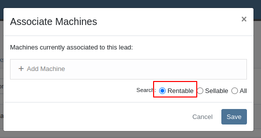 Rental Managers needed a clearer way to identify models and an easier method to locate rentable machines when working leads. Model numbers alone were often not descriptive enough, and the lack of a “Rentable” filter made machine selection inefficient.