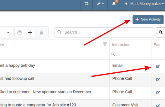 You can now add and edit Customer Activity directly from this page. Click "New Activity" to create a record. Or, use the Edit icon in the corresponding column to modify any existing entry.