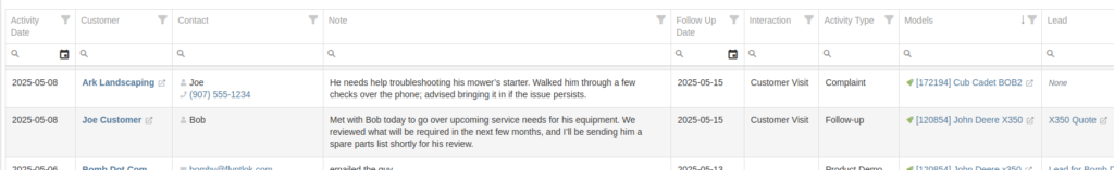 The new “CRM Customer Activity” report lets you browse all logged Activities for all customers in one place. Long-time users may recognize this as a fresh take on our existing "Customer Interactions" report.