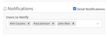 You can now notify one or more internal users when logging an Activity. Just check the "Send Notifications" box in the Notifications area to select recipients.