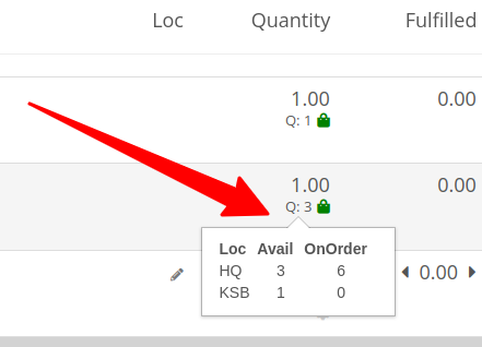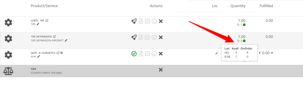 We have added the QOH for quoted Models to the Sales Order details. The “Q:” on a model line indicates the number of available Machines at the Invoice’s store location. Hovering over it will display additional information including the quantity of Machines currently on order, as well as inventory information at other store locations.