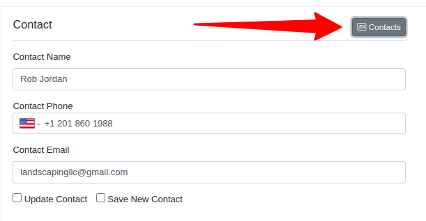 Then on future rentals, you can select the “Contacts” button on that section to pull up a list of the Customer’s Contacts.