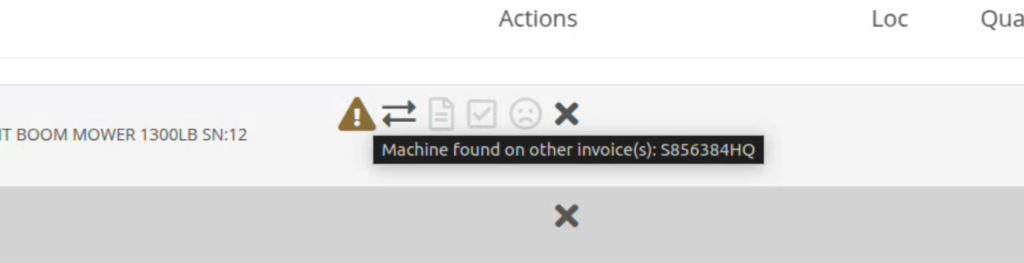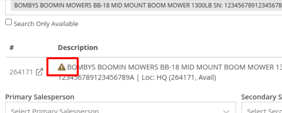 OpportunitySalespeople shared that knowing about potential Machine sale conflicts earlier in the sales process would be a game-changer. While we already provided warnings during the sale processing stage, we did not show this critical information at any other time during the life of the sale. Selling the same Machine unknowingly could lead to accuracy issues and impact customer satisfaction.SolutionAn indicator icon will now appear on the Machine sale line whenever there’s a potential conflict, such as the same Machine being listed on another Sales Order. This gives you a heads-up before finalizing the sale.