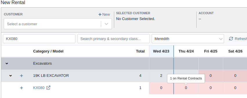 Complaint: Rental Clerks reported that sometimes the “Category Timeline” view on the New Rental page would report no conflicts, even when the Model had Machines that were out on rent.