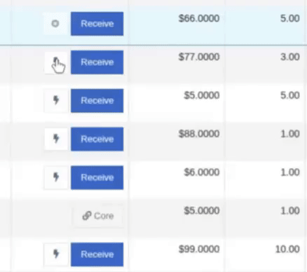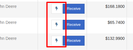We’ve added a new lightning bolt icon next to each Receive button on the Receiving Voucher. Clicking this icon will instantly mark the part as fully received at the Purchase Order’s expected quantity and cost.