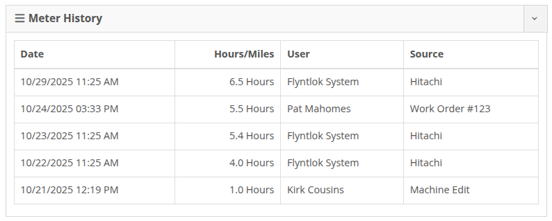 We have improved our system to better account for stale data, so that only actual updates in machine usage are reflected on your machines in Flyntlok. Additionally, we have improved our logging to show where any change to a machine’s miles/hours have been made.