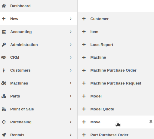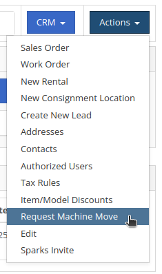 Moves can also be initiated from Customer Dashboard by navigating to Actions → Request Machine Move.