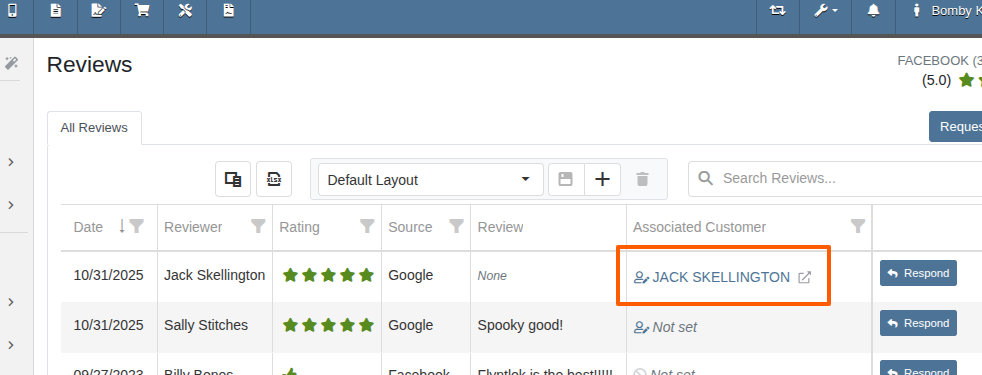 You can now associate Google Reviews with customers directly from the Reviews page using the new "Associated Customer" column. In several locations within the application we will display that customer’s most recent review, and clicking on that “*” review will take you to the CRM reviews page and open a dialog with the actual text of the Google review and your response to it (if any).