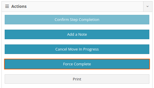 "Force Complete" ActionA new Force Complete button has been added to the Move View page. This option allows users to complete a move immediately, skipping intermediate steps like truckload assignments and status transitions.