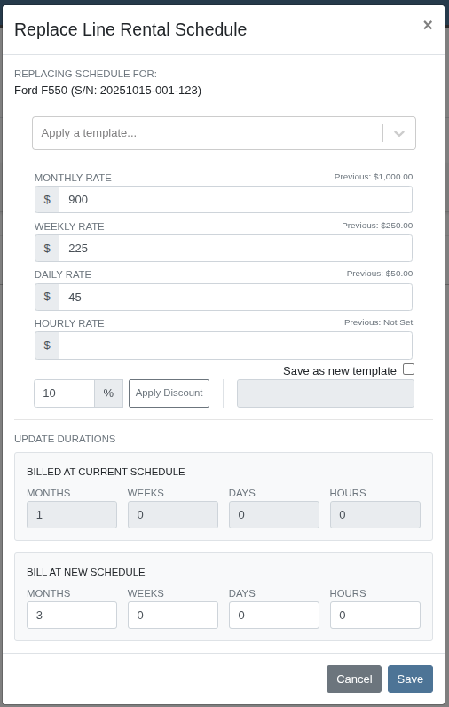 Rental Managers requested a better way to update long-term contract rates when new rates take effect. Previously, changing the rates on open contracts could have unexpected downstream consequences. For example, increasing the rates after making some billings made Flyntlok believe that underbilling had occurred, resulting in incorrect final invoices.