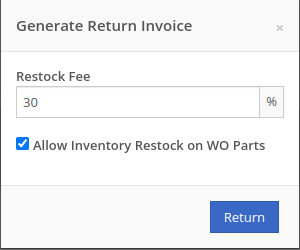Service Managers requested an option to select the “Allow Inventory Restock on WO Parts” box by default when generating a return Invoice.