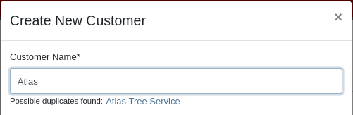 When creating a Customer from the New Rental and New Work Order pages, existing Customers sharing a similar name with the new Customer will appear under the Name field. Selecting a possible duplicate will set it as the Customer on the Work Order or Rental Contract.
