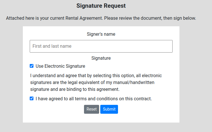Once the form is submitted, Flyntlok will generate a signature for the customer and add it to the contract.