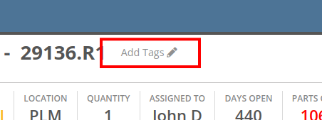 To use this feature, click on the "Add Tags" button located near the top of any ERP Work Order Dashboard: