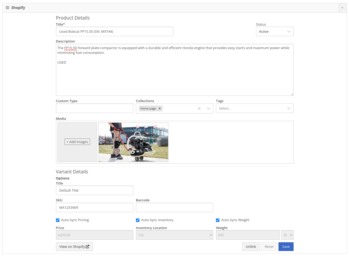 Furthermore, automatic syncing for price and weight are supported for Machines just like Items and Models. The quantity syncing for Machines will work a little differently from Models and Items as there is only one unit being linked. If “Auto-Sync Inventory” is enabled, Flyntlok will automatically update the quantity or location in Shopify when changes are made that may be relevant to the Machine’s listing in Flyntlok. These changes include actions like changing the “Allow Sale” flag or requesting a move from one store location to another.