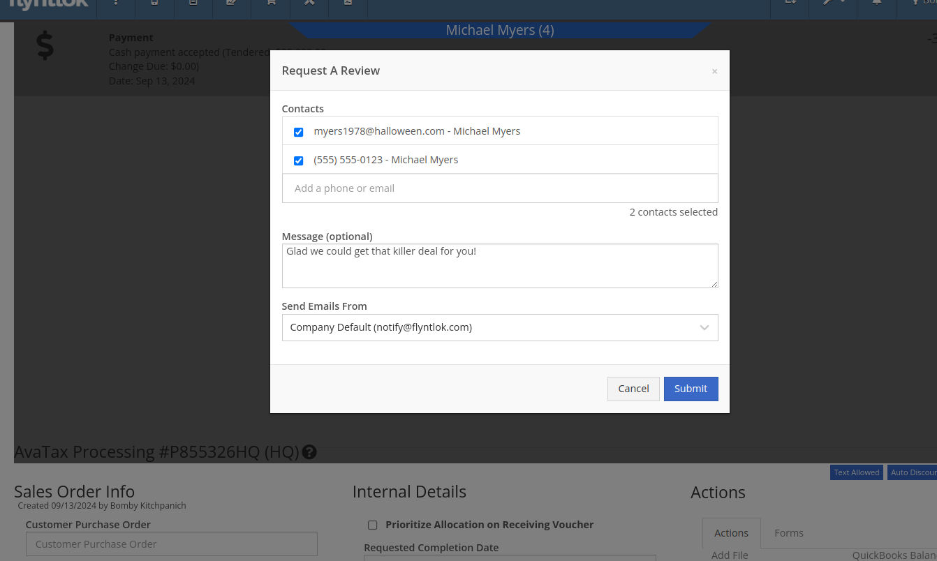Previously, requesting a Google or Facebook review from a customer required navigating to the CRM Reviews page. Users have suggested that integrating "Review Requests" into more common customer touchpoints within Flyntlok would greatly streamline workflows and improve efficiency. (Plus, our esteemed CEO was nagging us for months to do this.)