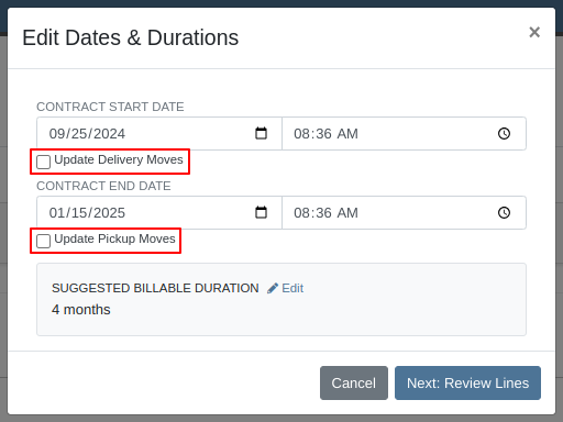 Administrators can now opt to have Flyntlok automatically create Moves from their Rental Contracts when the contract is reserved. Flyntlok will automatically sync the customer and machine information from a Rental Contract to its Moves until the Move has been assigned to a Truckload. Additionally, you will be prompted to update the dates or addresses on linked moves when updating contract dates and pickup or delivery addresses.